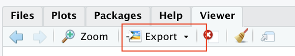 The first is to select the Export button from the Viewer window in Rstudio when the desired plot is displayed. This gives the option to save the plot as a .png, .jpeg, or .tiff. You cannot save as a .pdf with this method.